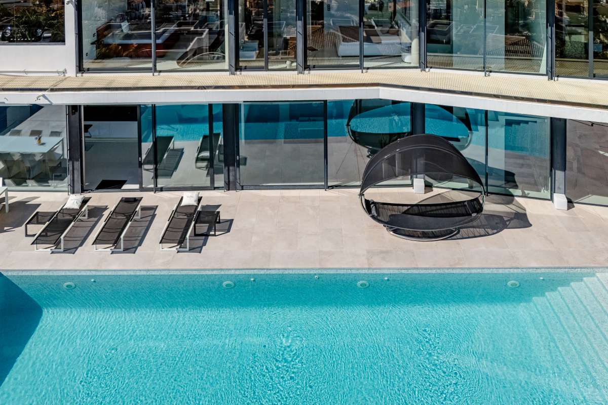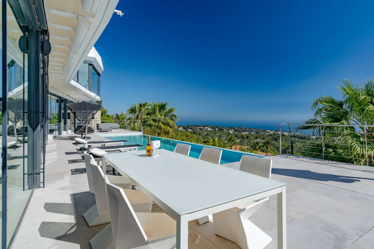 Prächtige Luxusvilla in Calpe zu verkaufen, gelegen im prestigeträchtigen Viertel Gran Sol, direkt neben der exklusiven Urbanisation Rincón de Galeno – einer der begehrtesten Wohngegenden der Costa Blanca, bekannt für ihre Privatsphäre, Eleganz und den spektakulären Panoramablick auf das Mittelmeer. Nur 2,7 km vom charmanten Strand La Fustera mit seiner berühmten Öko-Promenade entlang der Küste von Benissa und 3,5 km vom Yachthafen Les Bassetes und dem Strand Levante La Fosa entfernt, genießt diese Immobilie eine privilegierte Lage. Die Gegend vereint absolute Ruhe mit hervorragender Anbindung an die Stadtzentren von Calpe und Moraira, wo Sie Gourmetrestaurants, exklusive Boutiquen, medizinische Versorgung und ein vielfältiges Freizeitangebot das ganze Jahr über finden. Die Villa bietet einen atemberaubenden 180°-Panoramablick auf das Meer und den majestätischen Peñón de Ifach, ein Naturdenkmal der Costa Blanca. Dank ihrer Südausrichtung ist die Villa den ganzen Tag über sonnig und lichtdurchflutet. In einer ruhigen Sackgasse gelegen, bietet dieses Anwesen maximale Privatsphäre und Ruhe. Auf einem großzügigen 890 m² großen Grundstück verteilt sich die 560 m² große Wohnfläche auf zwei Etagen und ein Untergeschoss, die durch einen Panorama-Glasaufzug und eine elegante Designertreppe aus Marmor miteinander verbunden sind. Im Obergeschoss befinden sich drei geräumige Schlafzimmer, jeweils mit eigenem Bad und freiem Meerblick. Die Master-Suite besticht durch eine elegante, freistehende Badewanne, die das Badezimmer in eine private Wellnessoase verwandelt. Das Erdgeschoss bietet einen spektakulären, über 150 m² großen offenen Wohnbereich, der Wohnzimmer, Esszimmer und eine Designerküche mit Kochinsel vereint und so ein modernes und elegantes Ambiente schafft – ideal für gesellige Stunden. Dieser Bereich öffnet sich direkt zu einer atemberaubenden, 150 m² großen Terrasse mit einem 15 x 4 Meter großen, beheizten Infinity-Pool, einem Whirlpool, einer bioklimatischen Pergola, einer Sommerküche mit Grillplatz, einem Essbereich im Freien und einem exklusiven Chill-out-Bereich, der zum Genießen des mediterranen Lebensstils einlädt. Das Untergeschoss bietet zusätzlichen Luxus mit einem versteckten Mehrzweckraum, einem voll ausgestatteten Fitnessraum, einer Sauna, einem klimatisierten Weinkeller, einem weiteren Schlafzimmer mit Bad en suite sowie diversen Technik- und Serviceräumen. Diese Villa besticht durch ihre avantgardistische Architektur, bodentiefe Fenster, viel Tageslicht und hochwertige Ausstattung. Sie verfügt über Fußbodenheizung, eine hocheffiziente Klimaanlage mit aerothermischer Steuerung, eine 8-kW-Photovoltaikanlage, edle Außenschreinerarbeiten, exklusive Designer-Innenausstattung, LED-Beleuchtung, eine Alarmanlage mit Kameras und eine Feuchtigkeitsregulierung. Der Garten, der sich harmonisch in die moderne Architektur des Hauses einfügt, bietet dank automatischer Bewässerungsanlage ein elegantes und pflegeleichtes Ambiente. Zum Anwesen gehören außerdem eine geschlossene Garage für zwei Fahrzeuge und großzügige private Außenstellplätze. Eine außergewöhnliche Residenz, die Design, Technologie, Komfort und Exklusivität in einer der begehrtesten Lagen des Mittelmeers vereint.