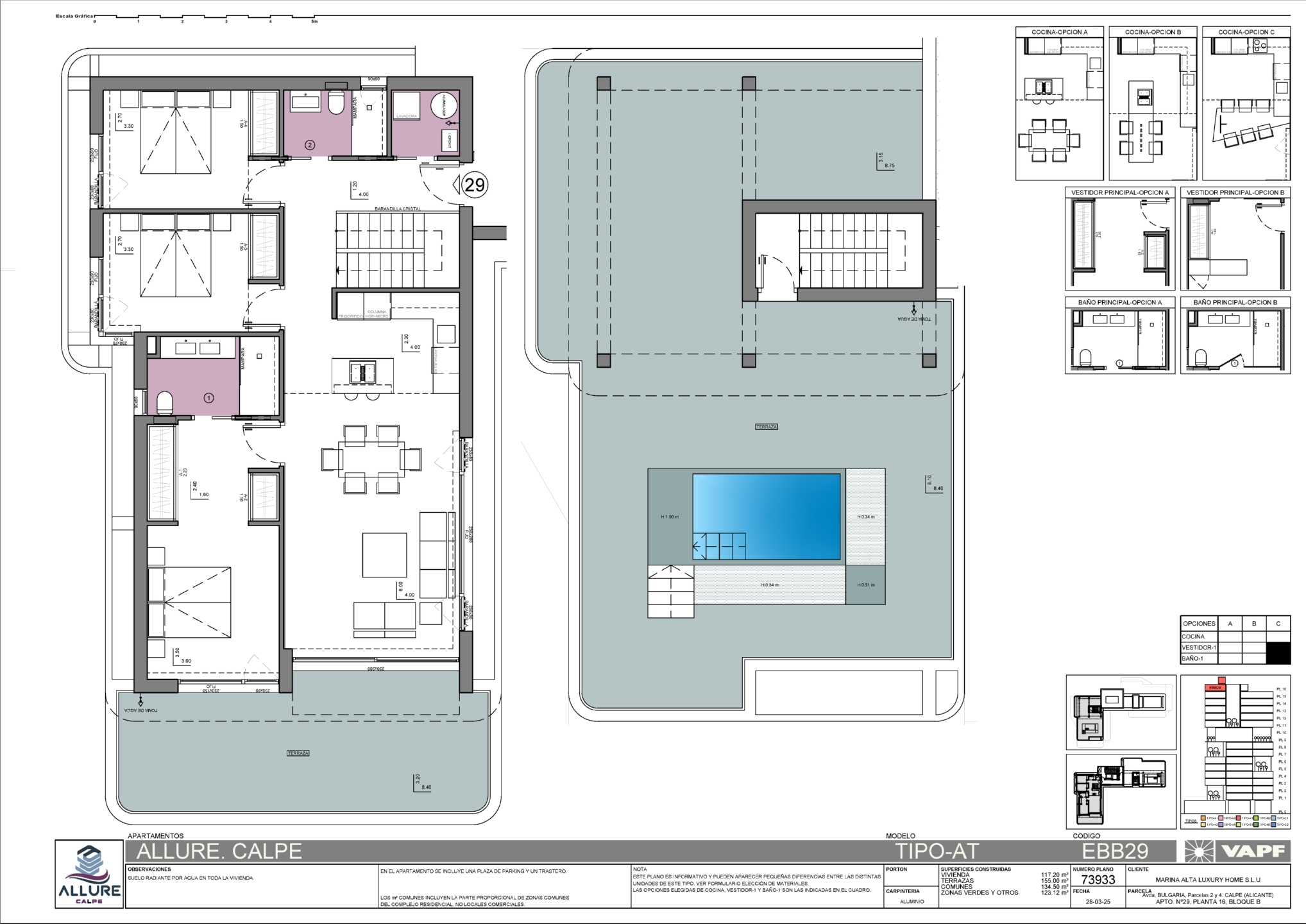 A ello se suma el acceso a las espectaculares zonas comunes de Allure: más de 3.500 m² con piscina exterior tipo resort, piscina exterior climatizada, gimnasio equipado, pista de pádel, jardines, espacios de relax y un pool bar donde socializar. El conjunto cuenta con acceso controlado, plazas de aparcamiento y trastero privado.