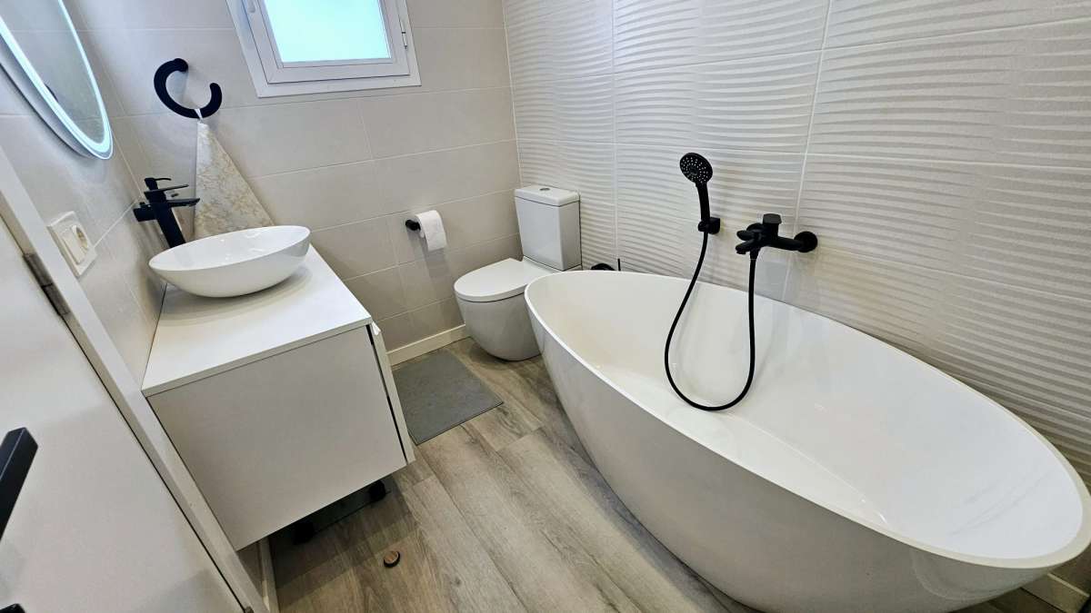 Magnifique maison de ville neuve dans un quartier résidentiel. D'une superficie totale de 200 m², elle comprend 3 chambres doubles, 2 salles de bains, 1 WC, une cuisine, une place de parking, une porte blindée, la climatisation réversible, une exposition sud-est, une piscine commune, une terrasse avec une belle vue sur la mer et un certificat d'authenticité en cours d'obtention.