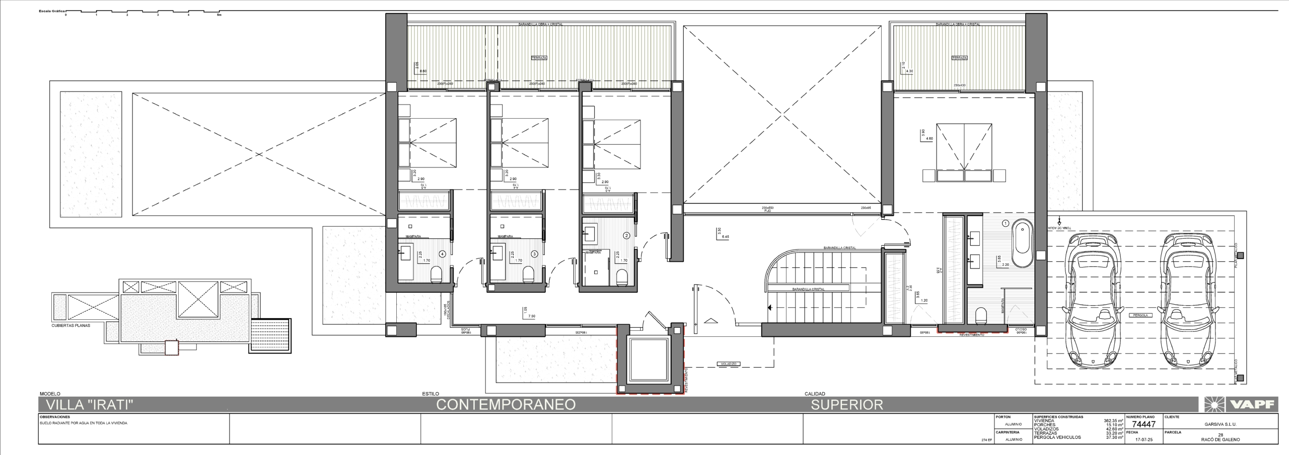 L'accès au logement se fait en haut de la parcelle, où une élégante entrée pour piétons est située à côté d'un garage couvert de capacité de deux véhicules. De là, un escalier extérieur et l'ascenseur intérieur relient toutes les plantes de la maison, offrant une expérience confortable et fonctionnelle, sans abandonner la conception architecturale et l'esthétique. Villa Irati n'est pas seulement une maison, c'est une déclaration de style et d'exclusivité dans un endroit unique, conçu pour ceux qui recherchent une maison où le design, le confort et les vues sur la mer sont des protagonistes.