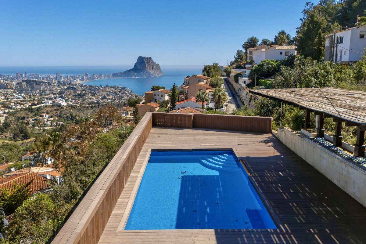 Ubicada en la codiciada zona residencial de Maryvilla en Calpe, esta encantadora villa ofrece la combinación perfecta de privacidad, tranquilidad e impresionantes vistas panorámicas al mar. Situada en un entorno apacible en la ladera de una colina, la propiedad se encuentra a poca distancia en coche de la playa, el puerto deportivo, restaurantes, bares y el animado centro de la ciudad, lo que la convierte en un lugar ideal tanto para unas vacaciones como para una oportunidad de inversión. Construida en 1970 y completamente renovada en su interior en 2012, la villa se asienta sobre una generosa parcela de 1.733 m² con una superficie construida de 285 m². La propiedad se distribuye en dos niveles independientes, cada uno con su propia entrada privada, lo que ofrece una excelente flexibilidad para huéspedes o para su uso como alquiler. La planta principal cuenta con una luminosa y espaciosa sala de estar llena de luz natural gracias a sus grandes ventanales, un comedor y un acogedor salón con chimenea, perfecto para relajarse por las noches. Esta planta también incluye una cocina totalmente equipada, un aseo de cortesía y un dormitorio principal con baño en suite. La segunda planta, accesible por escaleras, ofrece un espacio independiente con cocina propia, un cómodo salón, dos dormitorios y un baño, ideal para alojar a familiares o invitados con total privacidad. En el exterior, la villa está diseñada para disfrutar del estilo de vida mediterráneo, con una piscina privada rodeada de solárium, una zona de barbacoa para comer al aire libre y un cómodo aparcamiento. Varias terrazas ofrecen impresionantes vistas panorámicas al mar y al paisaje circundante. Esta propiedad es una excelente opción como casa de vacaciones gracias a su ubicación tranquila, sus hermosas vistas y su distribución versátil, además de ofrecer un gran potencial para obtener ingresos por alquiler.