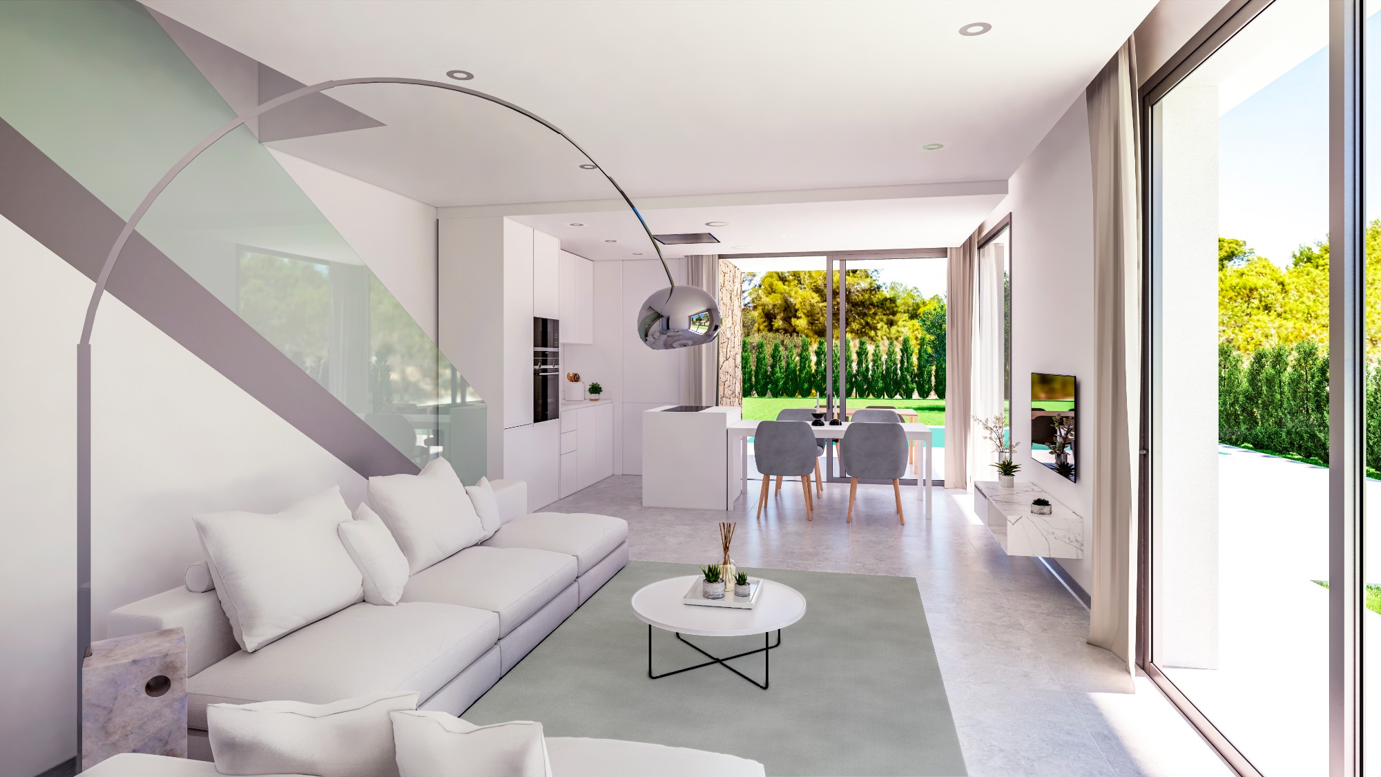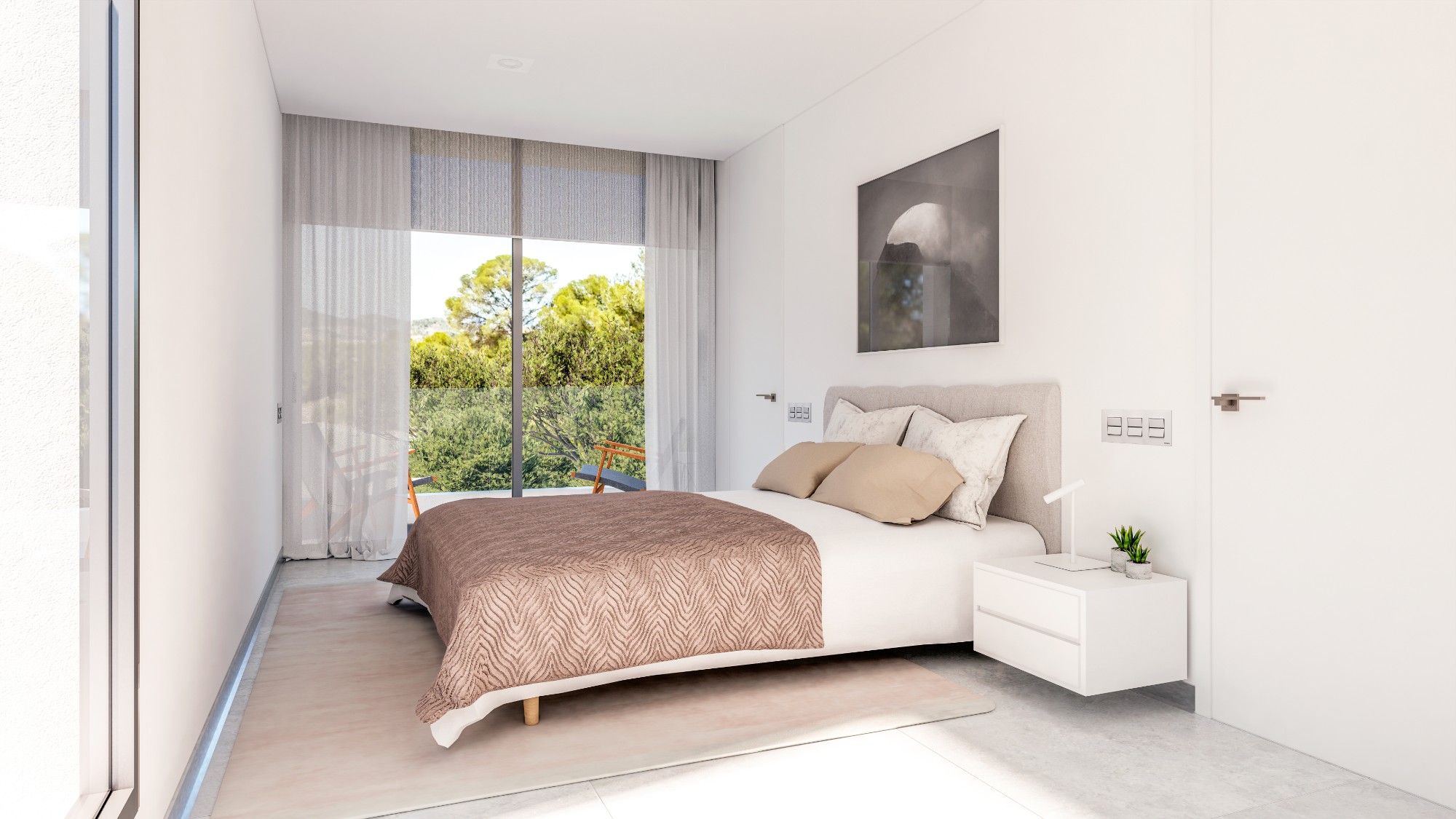 Todas las villas disponen de 3 amplios dormitorios y 3 cuartos de baño, dos de ellos en suite, lo que garantiza la privacidad y comodidad de cada residente. Construidas en parcelas que varían de 395 a 674 metros cuadrados, estas casas están cuidadosamente orientadas al sur, lo que te ofrece unas vistas impresionantes del mar azul y las majestuosas montañas.