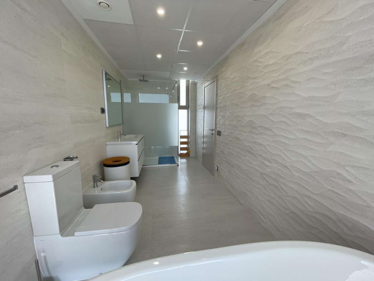 Esta excepcional villa moderna goza de una ubicación ideal en una de las zonas más exclusivas de Calpe, a pocos pasos del mar y cerca de las populares playas de La Fossa y La Fustera. La propiedad disfruta de una privilegiada orientación sur, que ofrece sol durante todo el día, privacidad y un auténtico estilo de vida mediterráneo, perfecto tanto como casa de vacaciones como para residencia permanente. Construida en 2019 sobre una parcela de 800 m², la villa ofrece 395 m² de superficie construida distribuidos en dos plantas más un semisótano. La propiedad destaca por su arquitectura contemporánea, materiales de alta calidad e impresionantes vistas panorámicas al mar y al emblemático Peñón de Ifach. La planta principal cuenta con un elegante vestíbulo, un amplio dormitorio con vestidor y baño en suite, un aseo de cortesía y una elegante cocina abierta con isla central conectada a un luminoso comedor. El impresionante salón de 70 m² se abre a una amplia terraza de 60 m² con toldos automáticos, creando una perfecta integración entre el interior y el exterior. La planta superior ofrece dos dormitorios de generosas dimensiones, ambos con vestidor, baño en suite (uno con bañera exenta) y terrazas privadas con vistas espectaculares. El semisótano proporciona espacio habitable adicional, incluyendo dos dormitorios, un baño completo, una sala multifuncional de 25 m² ideal como cine, gimnasio o sala de juegos, así como lavadero y trastero. Este nivel también ofrece la posibilidad de convertirse en un apartamento independiente para invitados con entrada propia. La zona exterior está diseñada para el máximo confort y relajación, con un precioso jardín paisajístico con riego automático, una gran terraza con pérgola de aluminio, una piscina rectangular de agua salada de 9,5 x 5 m, una cocina de verano totalmente equipada con barbacoa y toldo retráctil, y una sauna privada con capacidad para hasta cinco personas. Entre sus características adicionales se incluyen calefacción por suelo radiante, aire acondicionado, sistema fotovoltaico para mayor eficiencia energética, carpintería de alta gama, baños de diseño, cocina totalmente equipada, sistema de alarma con cámaras, iluminación LED y amplio aparcamiento con pérgola para dos vehículos. Esta villa combina a la perfección lujo moderno, confort y una ubicación privilegiada: una oportunidad excepcional para quienes buscan una propiedad de primera categoría en la Costa Blanca.